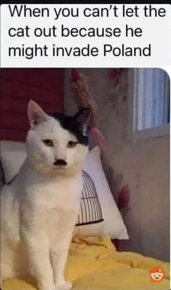 That was the original title of this draft, where I’d been saving some quotes, links and memes. It’s a more feasible comparison between Ukraine and Poland in terms of military on the border and former Russians/ Germans being abused on the other side.