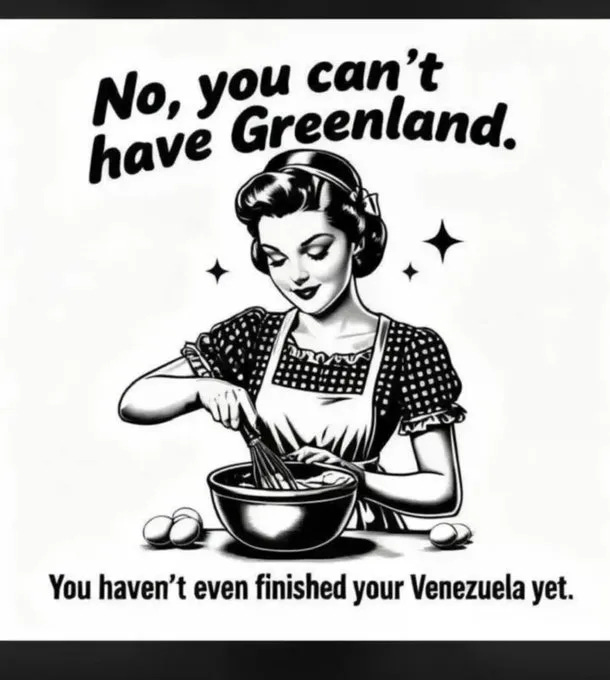 With the US, I just read a meme of a mom saying to a kid, “No you can’t have any Greenland until you finish your Venezuela.” How many fronts is the US expanding on now? [thanks again, Rat]
